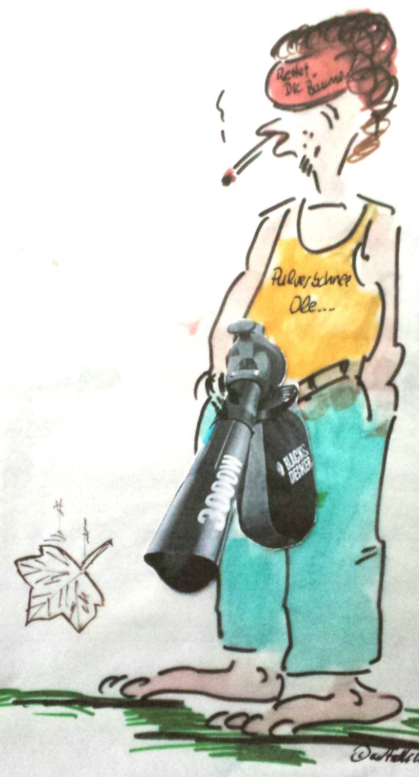 Wohingegen feuchte, am Boden haftende Blätter kaum aufzuwirbeln sind. Minutenlang halten die Laubverblaser ihr Rohr an das klebende Blatt, bis es sich geföhnt und getrocknet vom Boden löst und zur Seite wirbelt. Manchmal sind die Blätter sogar auch während der Woche unterwegs, wenn über Nacht die Natur geblasen hat.
