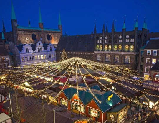 Lübecker Weihnachtsmarkt am historischen Rathaus