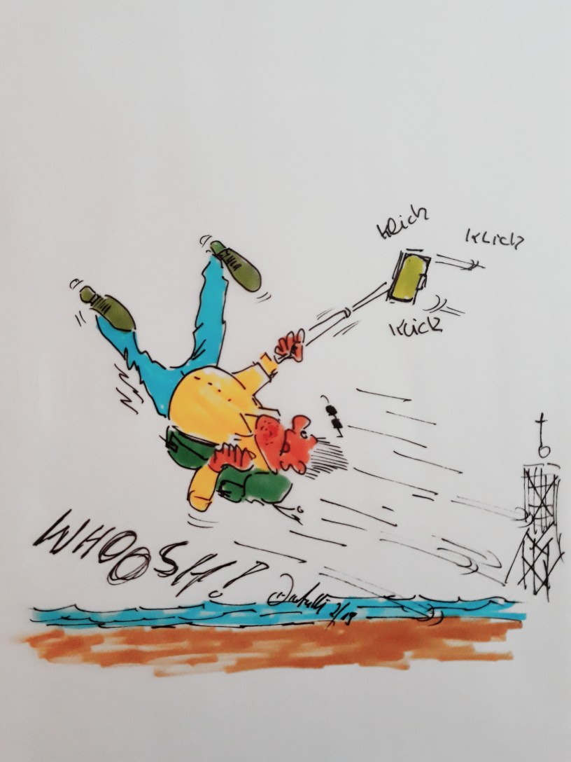 Neuer Cuxhaven-Cartoon: Im Januar kam das erste Sturmtief – Benjamin – des Jahres 2019. Doch nicht immer geht es dabei harmlos aus. Unser Karikaturist hat da so eine Idee – Sturmtief trifft Tourist!