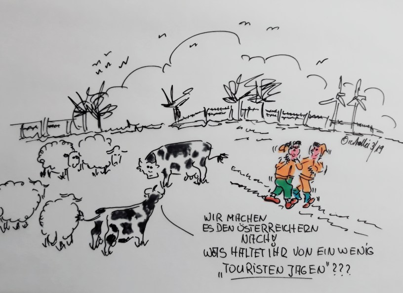 Zu erst passierte es in den Alpen, jetzt auch an der Nordsee. Erst die Kühe, jetzt auch Schafe – Touristen-Jagen ist IN!