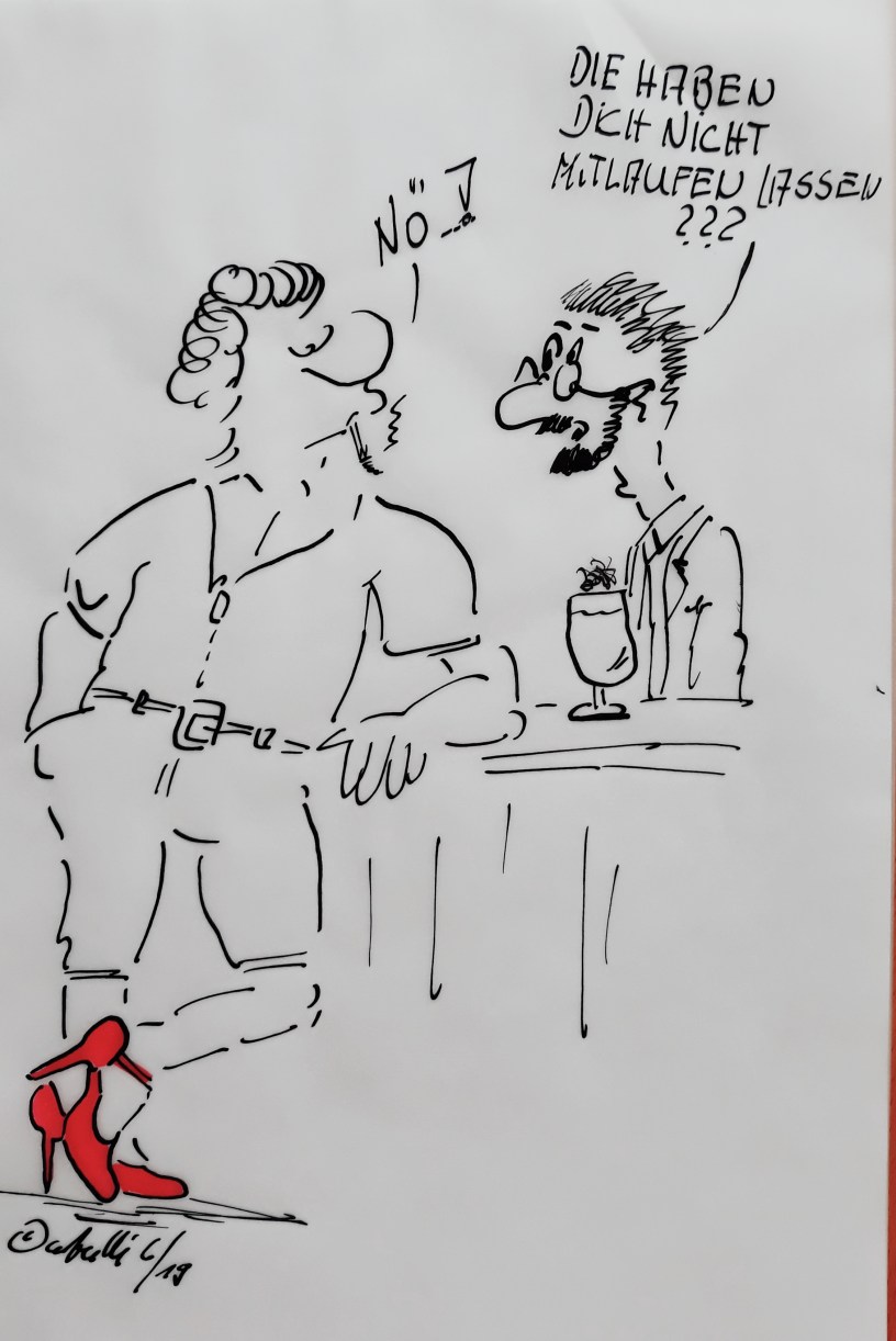 Neuer Cuxhaven-Cartoon: Spektakel in High Heels – Im Rahmen des Nordseelaufes liefen in Otterndorf vier Frauen in Stöckelschuhen um die Wette. Männer waren nicht dabei – SCHADE! Warum? Dazu der Cuxhaven-Cartoon.