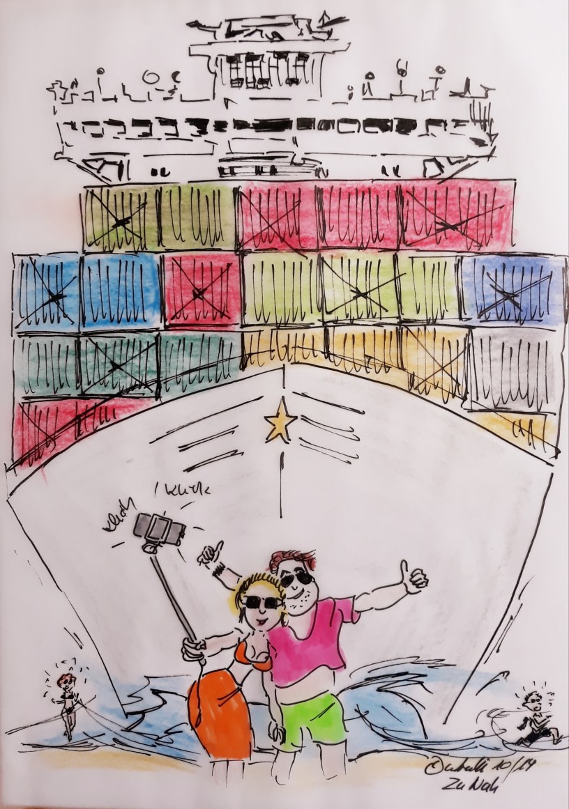 Neuer Cuxhaven-Cartoon: „Zu Nah…!“ sind viele Touristen am Leitdamm nahe der Kugelbake. Ein lebensgefährliches Unterfangen – also HÖCHSTE VORSICHT!