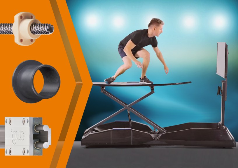 Mit dem Trainingsgerät profitieren auch Nicht-Surfer von dem effektiven Workout. Allein 20 verschiedene Übungen können auf nur 2 Quadratmetern vollzogen werden. Und das App-unterstützt, wodurch der Kunde wertvolle Training-Tipps erhält. Um die komplexen Bewegungen beim Surfen realitätsnah zu simulieren, setzt das Unternehmen inzwischen ganz auf die Vorteile der iglidur Hochleistungskunststoffe. Die auf Reibung und Verschleiß optimierten Tribo-Poylmere von igus erfüllen dabei die Erwartungen insbesondere in punkto Kosten- und Wartungsreduzierung.