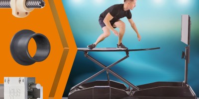 Surfen an Land: motion plastics machen Mensch und Maschine fit. Schmierfreie Hochleistungspolymere sparen 70 Prozent Kosten und vereinfachen die Wartung in Surf-Fitnessgerät. Ein Video zeigt wie es funktioniert.