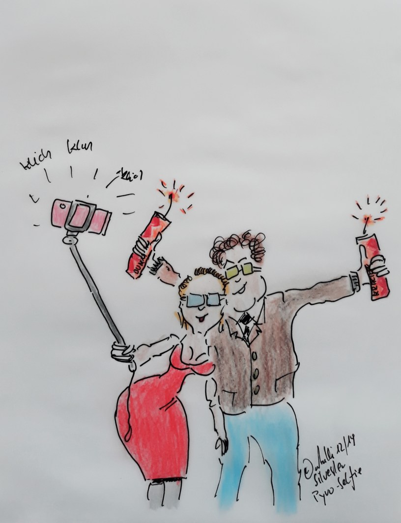 Neuer Cuxhaven-Cartoon: Zum Jahresabschluß, das „Silvester-Pyro-Selfie“ – um (wahrscheinlich) nicht ins Neue Jahr zu kommen!