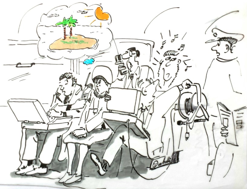 Selbst für die Neugierigen unter uns bietet eine Zugfahrt genau das Richtige: Passagiere mit Mobiltelefonen. Allein dieses Phänomen würde ein dickes Buch füllen. „Ja, ich bin im Zug und kurz vor Frankfurt.“ Am Schluss wissen Sie – gewollt oder ungewollt – Bescheid über die ganzen Familienverhält-nisse, die letzten drei Ex-Ehemänner, Erbschaften und angewandte Gynäkologie im Allgemeinen. Irgendwie interessant, aber auch ein ganz klein wenig nervig.