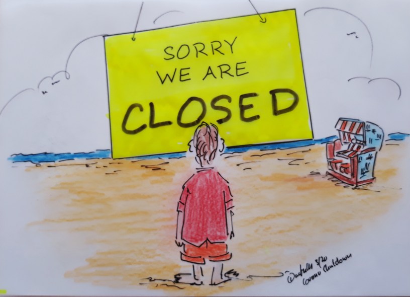 Neuer Cuxhaven-Cartoon: „… bis bald, Lieblingsort“ Im Kampf gegen das Coronavirus ist Cuxhaven jetzt erst einmal für Urlaubsgäste tabu.