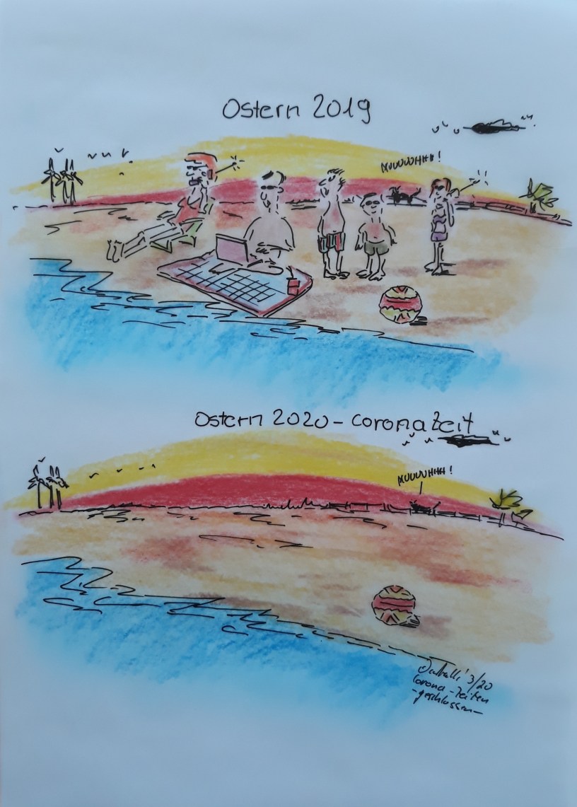 Neuer Cuxhaven-Cartoon: Corona-Krise – Die Urlauber sind aus Cuxhaven abgereist. „… bis bald, Lieblingsort“ Im Kampf gegen das Coronavirus ist Cuxhaven jetzt erst einmal für Urlaubsgäste tabu.