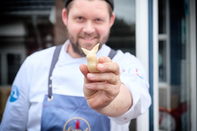 Konditor Jens Lund zeigt, wie man ein Häschen aus Marzipan für das Osternest formen kann. © Sylt Marketing