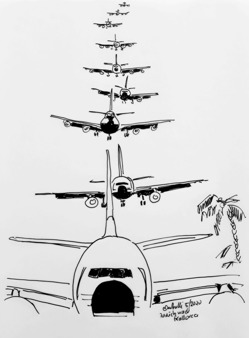 NEUER CARTOON: Anflug auf La Palma, Mallorca nach der Insel-Öffnung – alle sind dabei: „This is Mallorca Control! We Welcome Lufthansa, Ryanair, Air France, KLM, Britisch Airways ….“