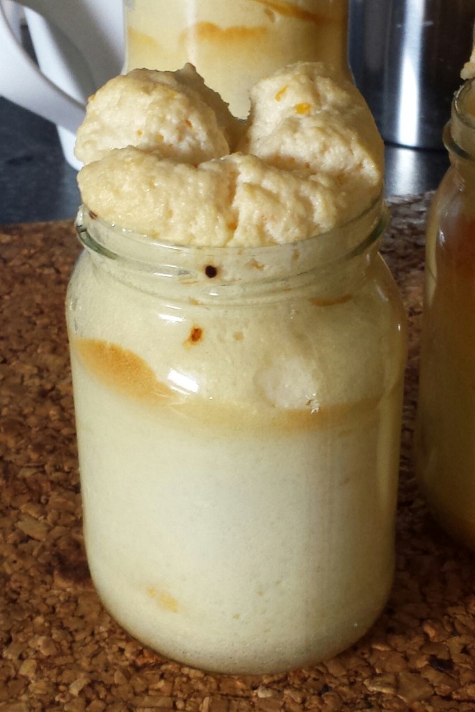 War heute zwei Stunden Joggen. Als kleine Überraschung hat meine Frau mir diesen leckeren Kuchen gemacht – Super!!! Den Käsekuchen im Glas kann man Zuhause zum Kaffee genießen – habe es gleich ausprobiert Meine Frau hat in die Creme noch Mandarinen und dicke Rosinen dazu gegeben, das macht den Käsekuchen nicht nur besonders lecker sondern auch schön saftig. Einfach einmal testen. Viel Spaß
