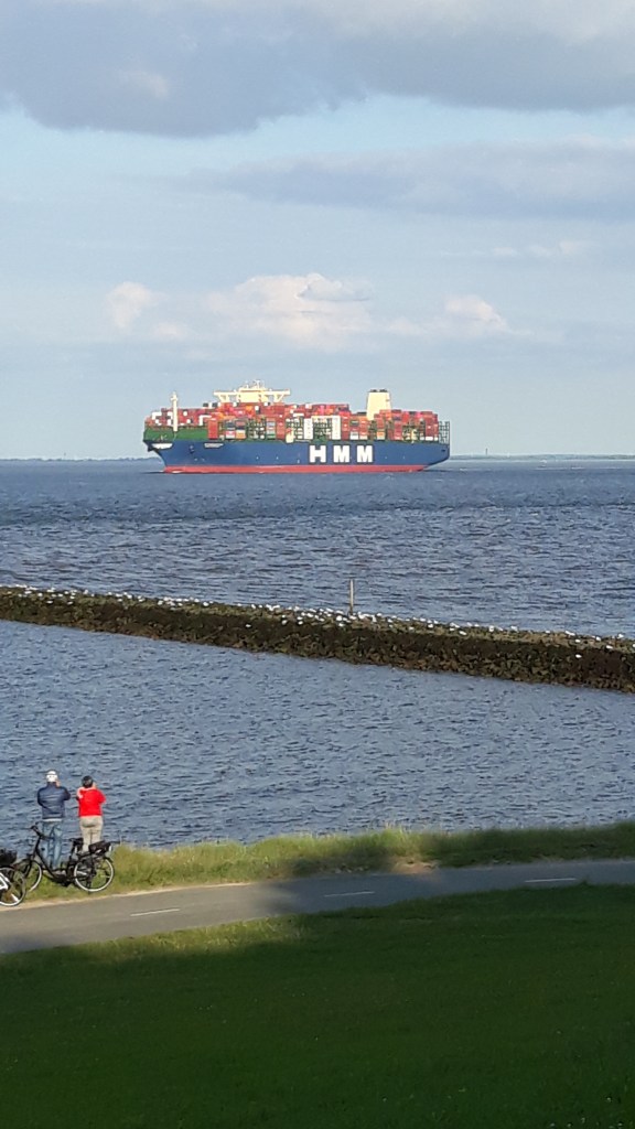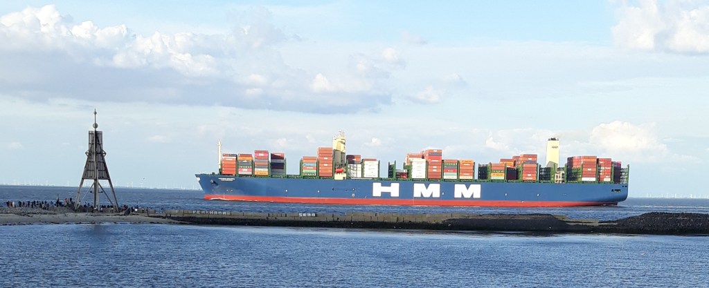 Um diesen Lauf zu gewinnen hatte ich die Hoffnung dass dies auch wirklich so war, hatte ich sie doch am Sonntagabend verpasst.Nachts und unplanmäßig früh hat sich die „HMM Algeciras“, derzeit größtes Containerschiff der Welt, am Wochenende an Cuxhaven Richtung Hamburg vorbeigeschlichen. Aber aufgeschoben ist nicht aufgehoben. Am Mittwoch, bei der Rückfahrt, sollte es soweit sein.