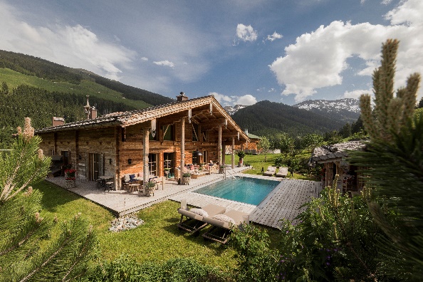 Neben einem eigenen Alpenspa mit Sauna und Swimmingpool verwöhnt ein Privatkoch gourmetaffine Gäste in der vollausgestatteten Designküche und kreiert alpine Gaumengenüsse mit Kräutern aus dem eigenen Chaletgarten. Der Alltag bleibt auf jeden Fall unten im Tal.