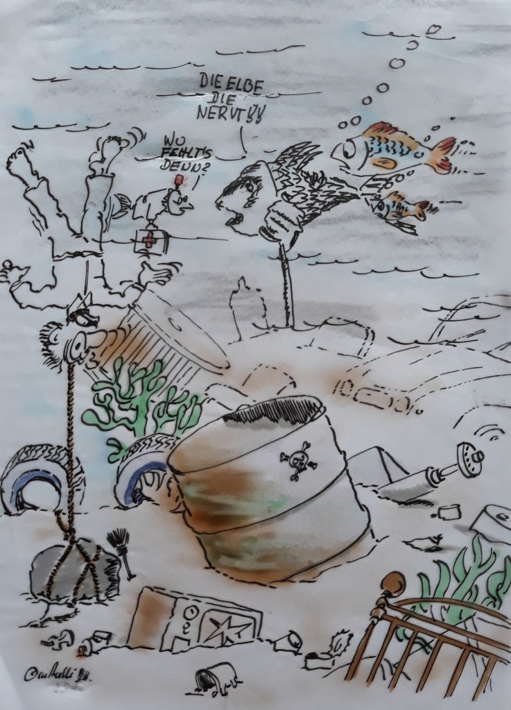 NEUER CUXHAVEN-CARTOON: Die Elbe ist ja gerade mal wieder in der Schlagzeilen. Viele tote Fische, und noch immer ist es nicht geklärt warum! Ich schlafe schon schlecht wenn ich mir nur vorstellen, was da alles ans Tageslicht kommen könnte.