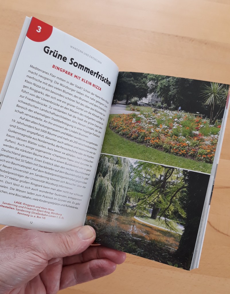 Aber was interessiert mich und wo finde ich das? Dafür steht das Büchlein 101 Sachen machen in Würzburg. Und es sind wirklich 101 ganz tolle Sachen, wie beispielsweise der Ringpark mit Klein-Nizza (dort kann man auch ganz toll joggen – mittendurch und einmal rundherum).