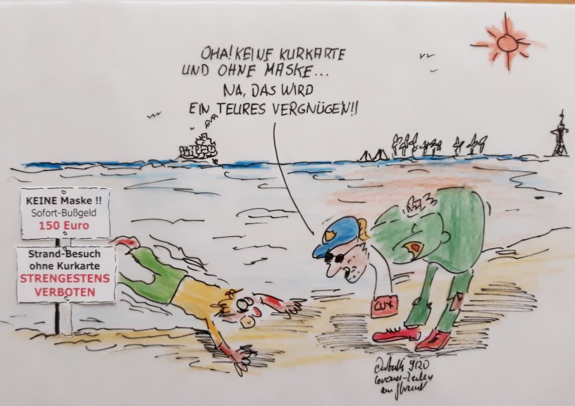 NEUER CUXHAVEN-CARTOON: In Corona-Zeiten wurden die Strand-Zugangsbedingungen noch einmal verschärft. Sicher, ist halt sicher!