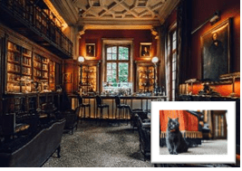 Die Hotelinhaber des einzigen Schlosshotels in Paris haben sich dazu entschlossen, die Bibliothek der früheren Schule zu erhalten und die heutige Hotelbar in diese zu integrieren – über zwei Etagen können Barbesucher die gut ausgewählte Standardliteratur mit 12.000 Büchern des ehemaligen Schulgebäudes betrachten. Inmitten von bequemen Lederstühlen ist die Wohlfühlatmosphäre perfekt, bei einem Club Sandwich und einem Malt Whiskey fast schon britisch. Mit etwas Glück schaut auch Hotelkater Pilou für die passende Gesellschaft vorbei.