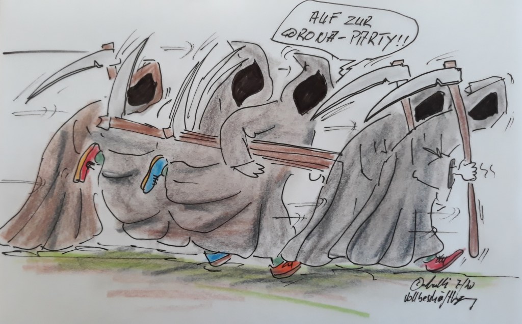 NEUER CUXHAVEN-CARTOON: Cuxhaven-Marathon am Sonntag. Rund 800 Läufer werden über die Langstrecken an den Start gehen. Muss das aber wirklich sein? Ich meine NEIN. Auch wenn schon beim Start noch die Maskenpflicht (kann auch ein Halstuch sein) gilt. Die Maske darf abgenommen werden, sobald man mit Abstand, frei laufen kann.