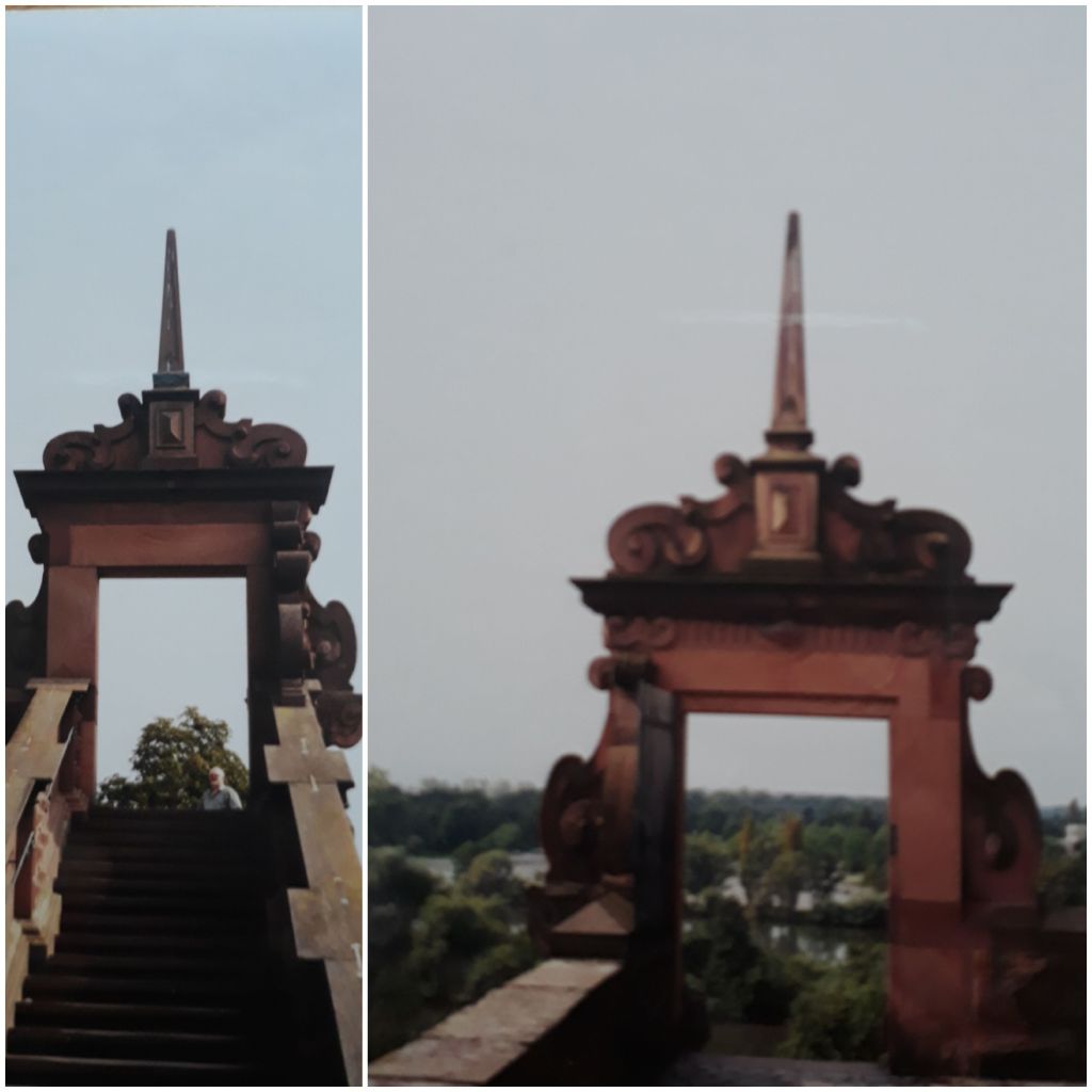 Hier ein Beispiel: Die Feste Johannisburg und das Sternentor in Aschaffenburg. Höhepunkt, wenn man vom Main aus kommt ist das Sandsteintor. Es scheint ohne Funktion, wirkt aber wie ein Brennglas der macht – so schreibt Fenzl. Ich habe es ausprobiert.