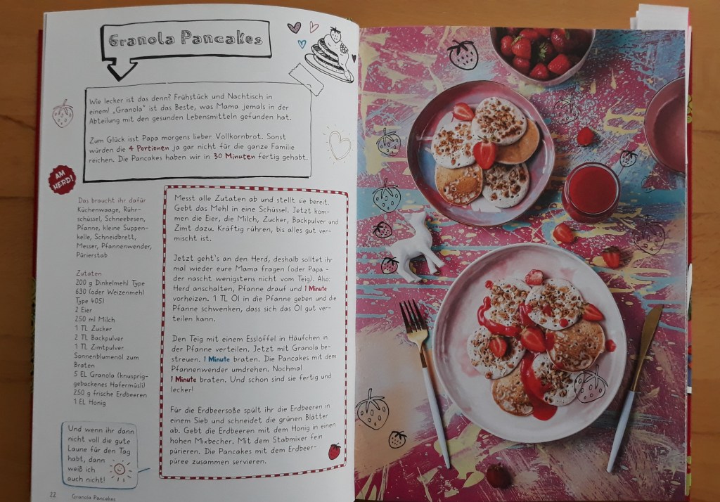 Was gibt es, neben den Rezepten, noch in „Mein Lotta-Leben“ Kochbuch zu entdecken? Beispielsweise: Was heißt 5 am Tag? Und warum ist Gemüse so gut für uns? Wichtiges Wissen über Obst, Gemüse, Milch und Co., Fisch, Fleisch, Kräuter und Gewürze. Neben all den leckeren Rezepten, ist das gesamte Buch witzig, genial und überraschend mit den Illustrationen von Danila Kohl durchzogen. Ein echtes Feuerwerk für die Augen und den Gaumen! Wirklich empfehlenswert.