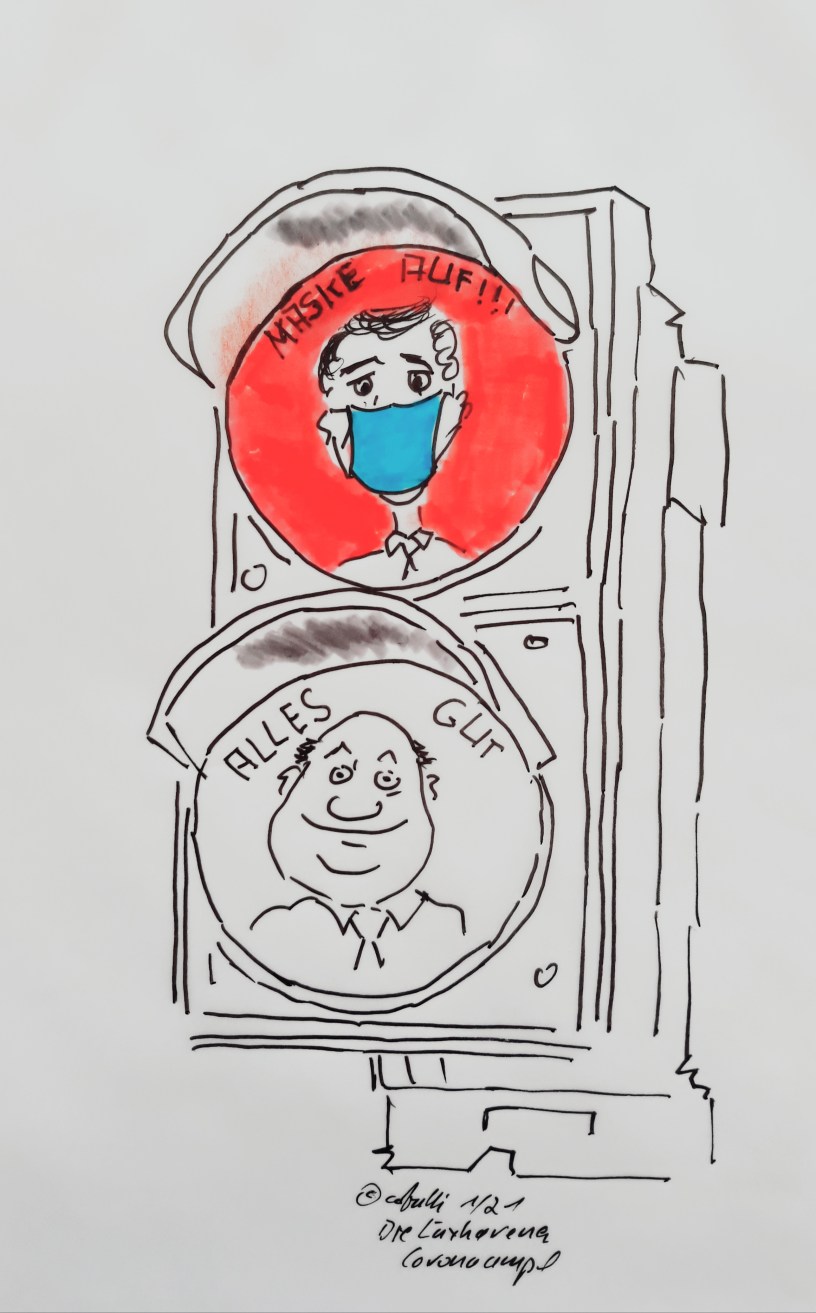 cartullis-Corona-Cartoon cartulli’s Corona-Cartoon: In Corona-Zeiten verändert sich vieles. Eine Idee in Cuxhaven: Die Masken-Ampel! Datum: 23. Januar 2021Autor: ullrichhoe 0 Kommentare cartulli’s Corona-Cartoon: In Corona-Zeiten verändert sich vieles. Eine Idee in Cuxhaven: Die Masken-Ampel! Teilen mit: Auf X teilen (Wird in neuem Fenster geöffnet) X Auf Facebook teilen (Wird in neuem Fenster geöffnet) Facebook Mehr Auf LinkedIn teilen (Wird in neuem Fenster geöffnet) LinkedIn Gefällt mir Wird geladen …