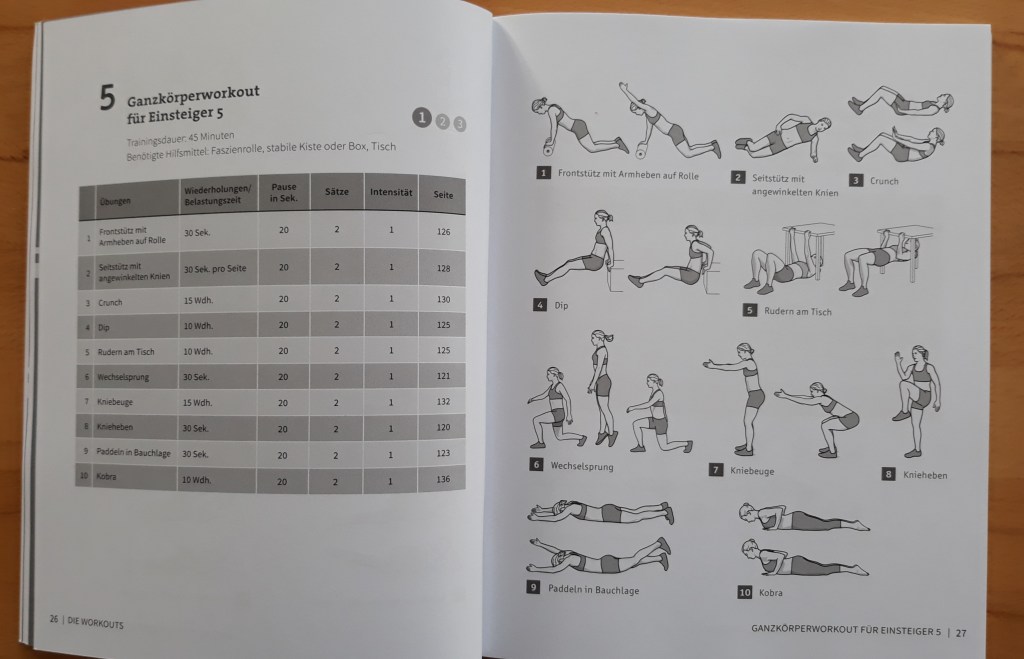 Wer also nach neuen Trainings-Inspirationen sucht, beispielsweise nicht ins Firnessstudio kann, oder dem seine täglich Jogging-Runde langweilt, der liegt mit diesem Buch genau richtig. Ich kann es empfehlen, besonders jetzt in der Corona-Zeit und dem Lochdown, aber ganz bestimmt auch danach. Ich habe meine Jogging-Runde und die Workouts kombiniert – funktioniert super! Also dranbleiben!