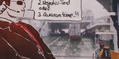 cartulli’s Corona-Cartoon: Anfang März gabe es wohl einen Corona-Verstoß auf der neuen Elbe-Fähre. Jetzt wurde reagiert. Ohne Maske, Negativ-Test und/oder Impfausweis geht garnichts mehr. Wowww,…was sich Karikaturisten alles so einfallen lassen!!