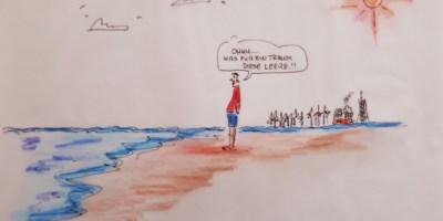 Neuer Cuxhaven-Cartoon: Noch ist Lockdown, noch ist Corona! Um aber auf den Punkt Fit zu sein – wenn z.B. Sonntag Corona vorbei wäre – ist Training angesagt. Und wie zu Corona-Zeiten üblich: ALLEIN! Da muss einem schon etwas Aussergewöhnliches einfallen.