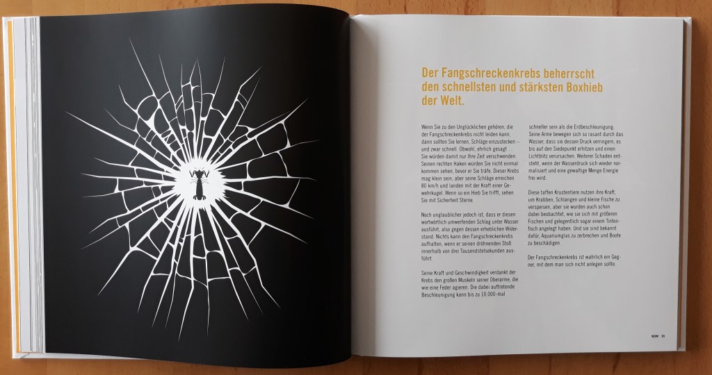 Warum ich das Buch empfehle: Wirklich „Wow!“ ist der Inhalt dieser Neuerscheinung. Das Buch des Illustrators Dan Marshall ist randvoll mit Fakten, die eine völlig neue Sicht auf unsere Welt und unser Leben bieten. Es ist ein Fakten- und Designbuch, das der Leidenschaft seines Autors für „unnützes“ Wissen über unser Universum und seiner Liebe für Grafikdesign entsprang.