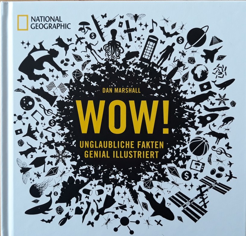 Warum ich das Buch empfehle: Wirklich „Wow!“ ist der Inhalt dieser Neuerscheinung. Das Buch des Illustrators Dan Marshall ist randvoll mit Fakten, die eine völlig neue Sicht auf unsere Welt und unser Leben bieten. Es ist ein Fakten- und Designbuch, das der Leidenschaft seines Autors für „unnützes“ Wissen über unser Universum und seiner Liebe für Grafikdesign entsprang.