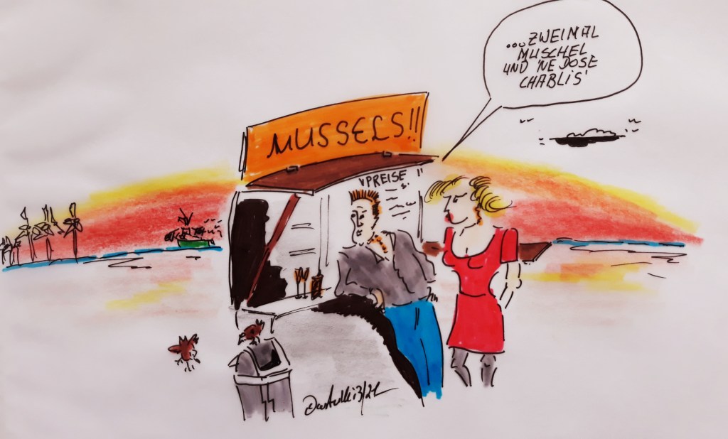 „Schon hatte das letzte Stück festen, würzigen Muschelfleisches seine Speiseröhre durchlaufen, und doch schwelgte er noch in dieser Sinfonie von Meer und Salz und Würze und Säure.