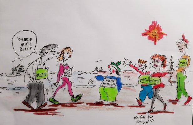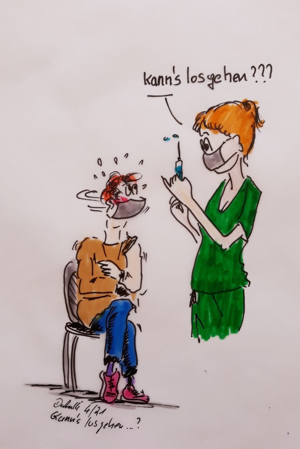 Es ist noch früh am Morgen im niedersächsischen Cuxhaven, an der Nordseeküste. Es ist der 22.04.2021, heute ist mein erster Impftermin im IZ Cuxhaven – 16:45 Uhr bin ich dran. Noch sind einige Stunden zu überbrücken. Also erst einmal joggen am Strand, dann Frühstück mit meiner Frau und dann etwas Arbeit im Homeoffice – bin freier Journalist, Karikaturist und Blogger. Die Zeit aber zieht sich.