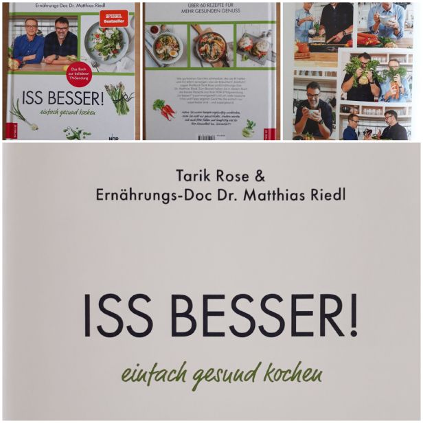 Warum ich das Buch empfehle: Das interessant an diesem Kochbuch ist, dass ein Koch und ein Ernährungsmediziner zusammen gesunde Rezepte für den Alltag entwickeln, die noch dazu gut schmecken. Der Buchtitel entstand aus einer Fernsehsendung. „Iss besser!“ ist eine Kochsendung im NDR. Hier assistiert Ernährungs-Doc Matthias Riedl dem Koch Tarik Rose in der Küche. Der eine kocht leckere und leichte Gerichte, der andere weiß, was an ihnen gesund ist und was sich lohnt auszuprobieren. Aus dieser Sendung ist dieses Kochbuch entstanden.
