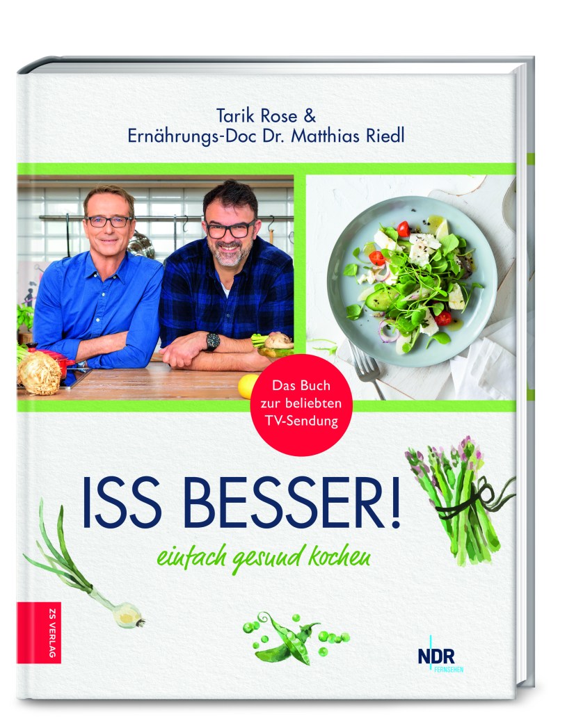 Darum geht es: Den Deutschen ist es mittlerweile wichtiger, dass Essen „hauptsächlich gesund“ ist und nicht „hauptsächlich lecker“. Umso besser, wenn man beides ganz leicht unter einen Hut bringen kann. Wie das gelingt, wissen Dr. med. Matthias Riedl und Tarik Rose. In der erfolgreichen NDR-Fernsehserie „Iss besser!“ zeigen der bekannte Ernährungs-Doc und der Hamburger Spitzenkoch, dass gesunde Ernährung richtig gut schmecken und Spaß machen kann. Für Besser-Esser und alle, die es werden wollen, gibt es jetzt die besten Rezepte und viel Wissenswertes für eine gesunde Alltagsküche, im neuen Buch „Iss besser!“