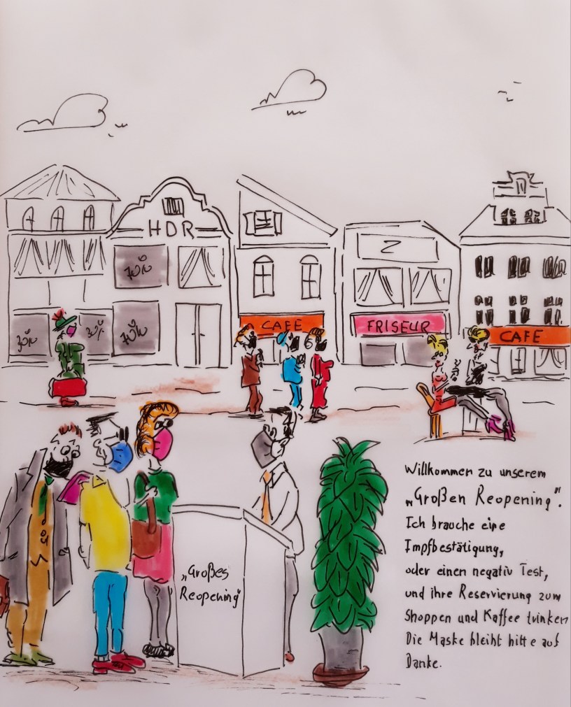 cartulli’s Corona-Cartoon: Es geht los! Was? Na, die Lockerungen, das „Große Reopening“. Ich hoffe nur das es funktioniert und kein Satz mit „X“ wird.