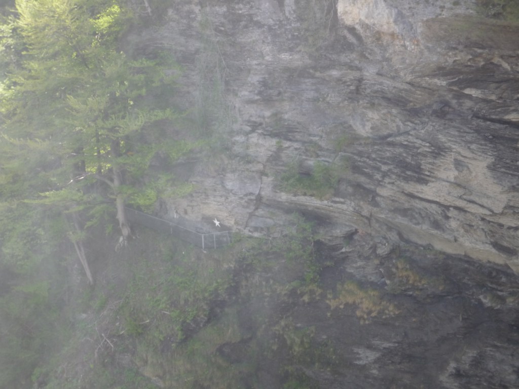 Diese Ruhe oben, über dem Tosen von unten, mag manchem vorkommen wie eine zarte Andeutung dessen, was ihm fehlt, in der Hast des Lebens – der Friede der Seele. Unten jedoch tost und zischt es, “wie wenn Wasser mit Feuer sich menget”- riesige Wolken feiner, durchsichtiger Wassergischt ziehen vorüber, und man bekommt einen Einblick in das durch den Absturz erregte, grollende, aufbrausende nasse Element. !! Auch wenn man dort in erster Linie staunen muss vor dem gewaltigen Wasserfall, so wirkt die Kraft der Fälle doch ungemein beruhigend auf den empfindsamen Menschen. Ein Platz mit viel Bewegung !!