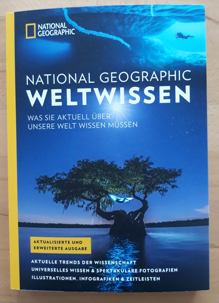 Warum ich das Buch empfehle: Das Buch bietet sowohl bildlich als auch informativ, mit seinen 320 Seiten, sehr viel Interessantes, teils auch Kurioses. Der Leser findet gut aufbereitete Inhalte, und das auch noch Aktuell. Dabei reichen die Themen von beispielsweise Wege des Wassers, über Infektionen (inkl. Corona), Erkundungen und Abenteuer, über Reisetrends, Alles über unseren Planeten, hin zu Gesundheit und Medizin, dem Menschen, Kontinente und Ozeane, sowie zum Schluss Zukunftsprognosen.