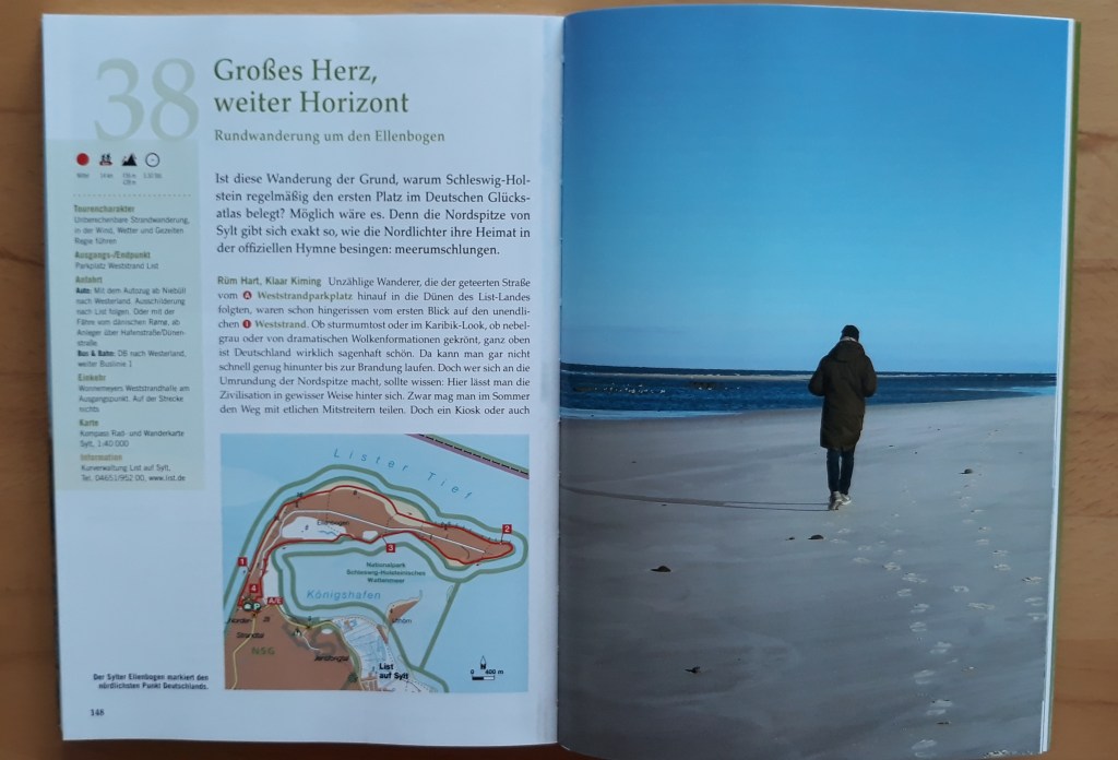Warum ich das Buch empfehle: Die Reihe „Mystische Pfade“ aus dem Bruckmann Verlag wurde jetzt um den Band „Schleswig Holstein“ ergänzt. Doch leider muss man sagen, „Mystische Pfade“, in meiner Definition, sind es bei weitem nicht. Nur einem Pfad kann man den Titel „Mystischer Pfad“ wirklich geben. Es ist der Weg um den Ellenbogen auf Sylt.