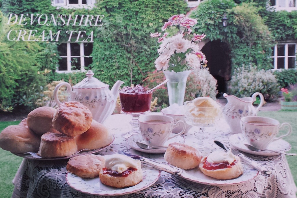 Die Namen Devon cream tea bzw. Cornish cream tea beziehen sich auf die südwestenglischen Grafschaften Devon und Cornwall, beides Zentren der Milchwirtschaft und die Heimat der Molkereispezialtät Clotted cream.