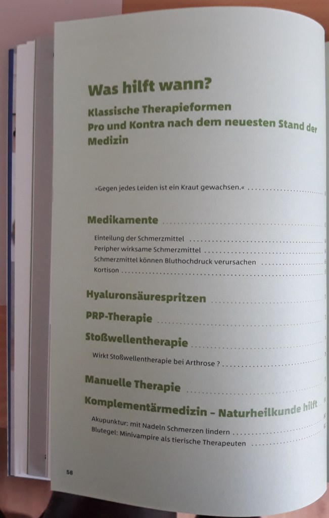 Ich mag Dr. Lekutat, er ist sympathisch und kompetent. Seine Bücher finde ich super, habe auch schon „Gesundheit für Faule“ gelesen – klasse. In seinem neuen Buch „Arthrose“ zeigt Lekutat, wie man – bei dieser Diagnose – wieder schmerzfrei werden kann. Der Text ist verständlich geschrieben und lässt sich gut lesen. Durch das Einbringen der eigenen Erfahrungen des Autors, sowie durch den Schreibstil, wird das Thema gut aufgelockert. Die Fotos und Zeichnungen unterstützen hilfreich bei der Wissensvermittlung. Die vielen verschiedenen Behandlungsformen einschließlich ihrer Vor- und Nachteile werden verständlich und umfassend dargestellt. Die Übungen lassen sich einfach durchführen.