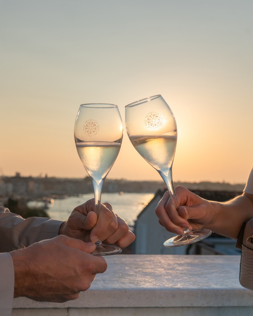 Im Herzen des Prosecco-Gebietes befindet sich Treviso – hier steht alles ganz im Zeichen von Genuss und Dolce Vita: Bei einer »bàcaro tour« ziehen wir zur Aperitivo-Zeit durch die vielen kleinen Lokale des historischen Stadtkerns und lassen uns bei einem Glas Prosecco DOC Rosé die typischen Cicchetti schmecken, kleine schmackhafte Häppchen – das pure italienische Lebensgefühl. Prosecco DOC Rosé ergänzt erst seit 2020 die Prosecco-Familie. Er ist immer trocken ausgebaut, im Geschmack rund, weich und fein strukturiert.