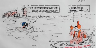 cartulli’s 7. Wochenrückblick – 22.08.2021 – Immer Sonntags, immer 10:00 Uhr, immer drei (3) Cartoons zu Themen der vergangenen Woche. Heute: 50 km-Swim von St. Peter-Ording nach Helgoland; Cuxhaven impft – ohne Termin – auf dem Wochenmarkt; Zerstörungswut durch Tornado bei Aurich.