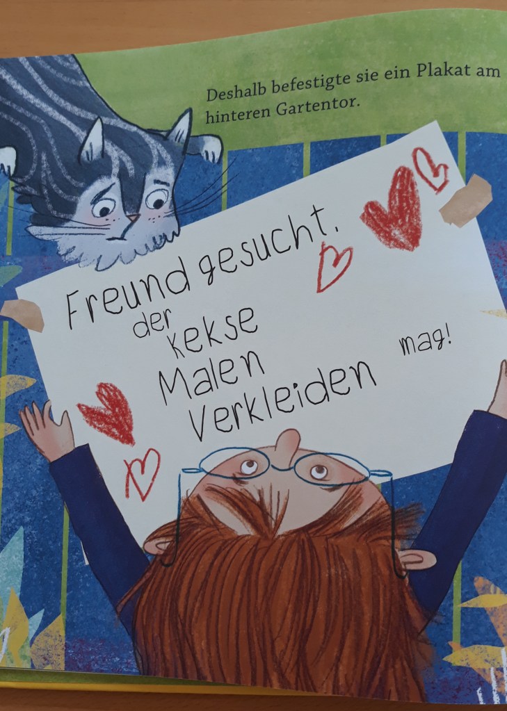 Warum ich das Buch empfehle: Ein zauberhaftes Mutmachbilderbuch mit wunderschönen Illustrationen und einer kindgerecht verpackten Botschaft: Beste Freunde müssen nicht alles teilen. Die beiden Protagonisten, Mimi und der Bär, sind schon auf dem Cover zusehen. Die Geschichte kommt mit wenig Text aus. Dabei gefällt mir Zeichenstil sehr gut. Die lebendige und ausdrucksstarke Mimik von Mimi und von Herrn Bären ist herrlich anzusehen.