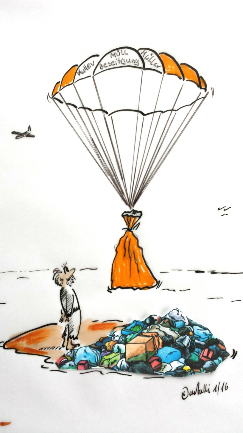 Unser Müllhaufen wächst und wird immer größer. Und mit ihm wachsen die Fragen: Wann landet der erste Müllcontainer auf dem Mond? Wann gehen die weltweit arbeitslos gewordenen Fischer statt auf Fischfang auf