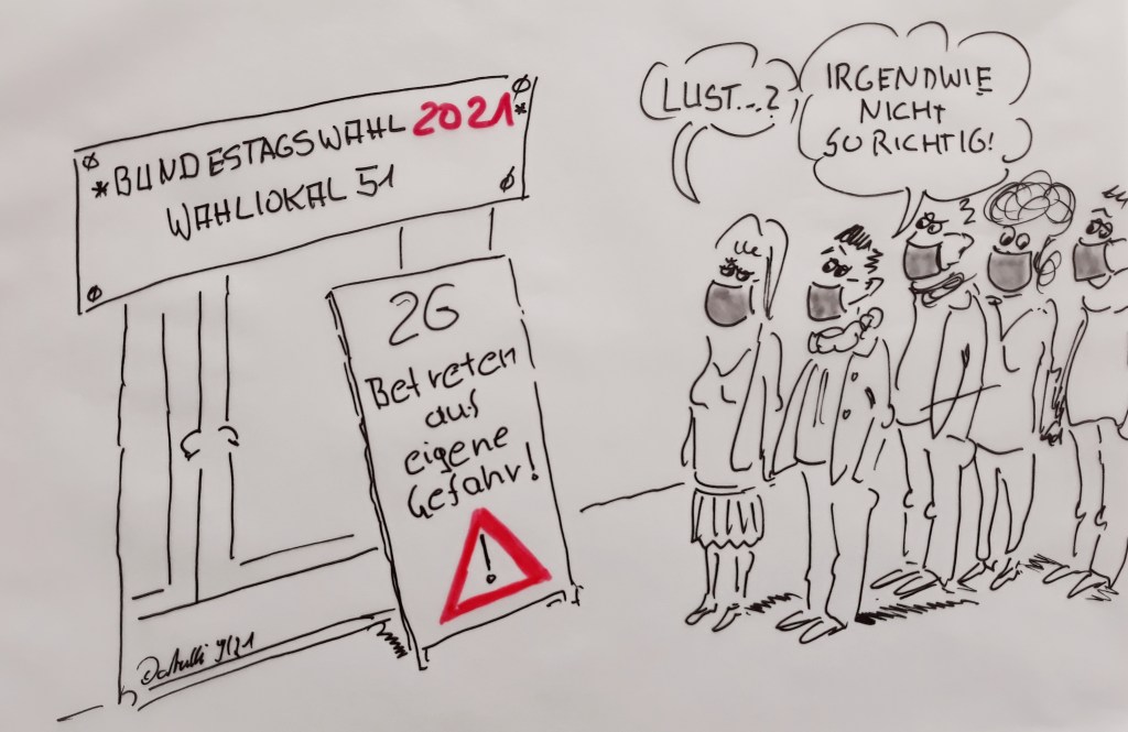 Neuer Cuxhaven-Cartoon: Es ist 8:15 Uhr, Sonntag den 26.09.2021, Wahltag zur Bundestagswahl 2021. Vor meinem Sonntagsmorgen-Lauf noch schnell zum Wählen, und eine Idee für den Cuxhaven-Cartoon. Nicht vergessen, HEUTE WÄHLEN GEHEN, UNBEDINGT, IST WICHTIG!!!!