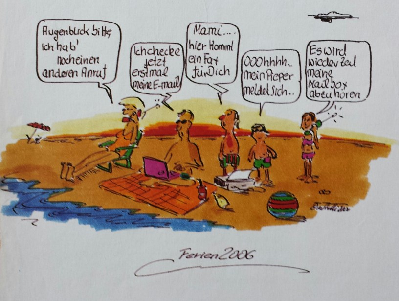 Das Telefon, das wir jetzt überall so leicht zur Hand nehmen können, führt uns jederzeit und egal an welchem Ort zu einem kleinen interessanten Schwätzchen oder einer wichtigen Besprechung zusammen. Doch ob nach zwei Stunden oder fünf Minuten – am Ende quälen wir uns mit der Frage: „Wie sag ich`s nur meinem Gesprächspartner?“ jeder vierte Telefonbesitzer rechtfertigt den Schluss seines Gespräches mit einer Ausrede. Das Repertoire reicht von „Du, es klingelt an der Tür“ bis zu „Oh mein Gott, die Milch kocht über“. Dabei geben die wenigsten zu, dass sie lieber zur Gartenliege zurückkehren möchten.
