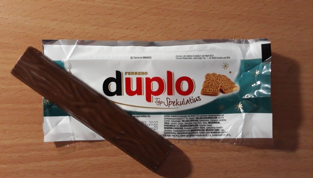 Leute, das ist kein Scherz, die neue Duplo-Sorte ist erhältlich, ich flippe aus – Wie cool ist das denn? Was hat es nicht alles schon gegeben: Duplo Milchcreme, Duplo Cocos, Duplo Karamell, Duplo Zartbitter, Duplo White, einfach Duplo und jetzt auch noch Duplo Typ Spekulatius!