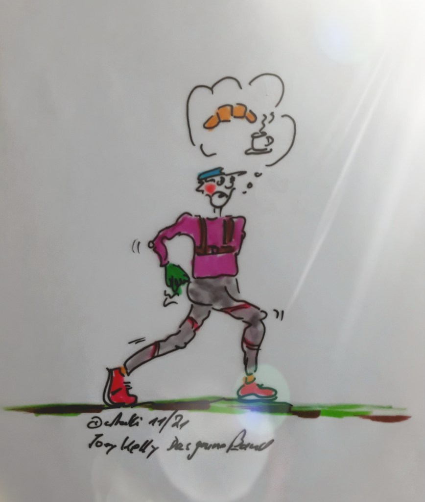 Mit Sohn Luke machte sich Joey Kelly auf den Weg. Er läuft, und Luke empfängt ihn nach jeder Etappe mit einem historischen Bulli (naja!!!). Die erste Etappe startete in Priwall, Schleswig-Holstein und ging bis Bleckede. Das Ziel – die 17 Etappen (von Mödlareuth bis Mittelhammer) – ist eher unspektakulär, ein Bach mit Grenzpfahl, mitten im Wald. Hier hat dann alles auch ein Ende, das Buch und auch das Extrem-Abenteuer eines Laufes über 1400 km entlang der ehemaligen deutsch-deutschen Grenze. Ich glaube Kelly hätte aus diesen Erfahrungen und den Erzählungen sicher noch ein weiteres Buch machen können. Dieses hier ist unbedingt lesenswert – auch wegen der vielen tollen Bilder – KLASSE.