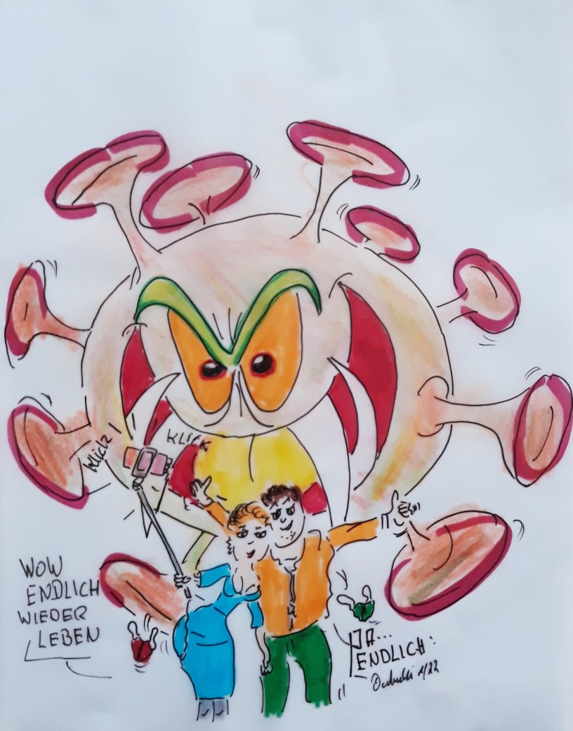 cartulli’s Cartoon – Gefährliche Wünsche: Omikron und Deutschland treffen hart aufeinander. Es ist sehr ERNST, man kann sich keinen Fehler erlauben. Das Beste heutzutage ist Vorsicht in allen Lebenslagen und Impfen, Impfen, Impfen…