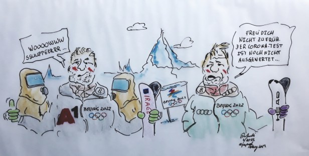 Die Winter-Olympiade – BEIJING 2022 – läuft. Heute gibt es einen neuen „cartulli’s Olympia-Cartoon“. Große Probleme beim Abfahrtslauf, beim Slalom, bei Mixedspringen, usw. usw. Vielleicht gewinnen hier ja doch nicht die Besten (???), sondern die, welche nach all den Corona- und sonstigen Maßnahmen, übrig bleiben. Na, wer weiß das schon ….!!!